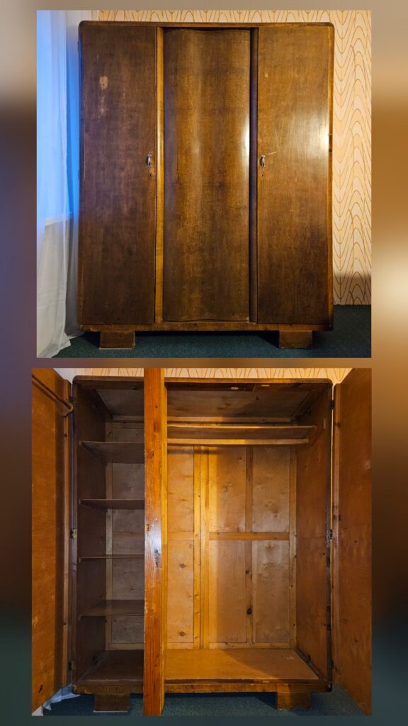 Ära anda riidekapp. Vana lainelise uksega riidekapp. Kapp on lahti võetud.