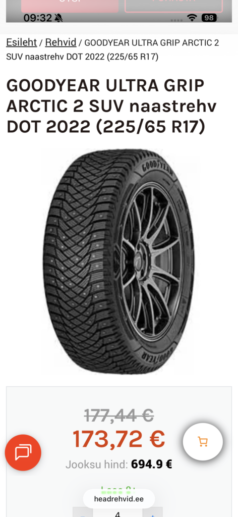 Tere, müüa uued GoodYear ultra grip artic 2 suv rehvid, 225/65/17.
