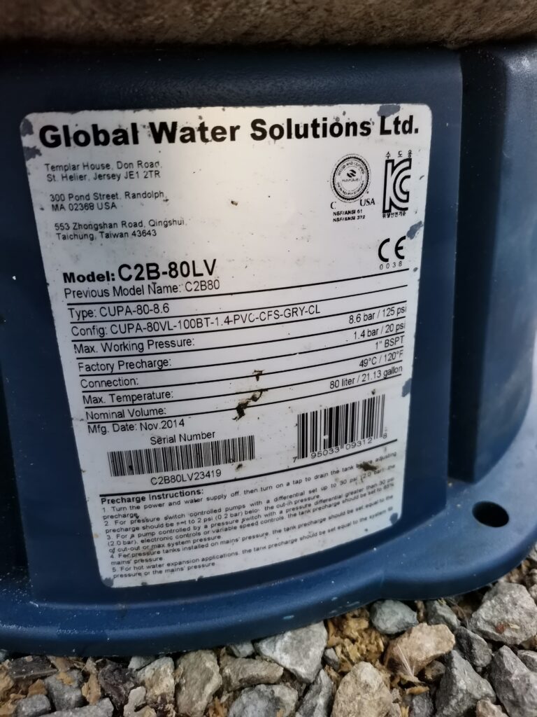 Müüa kasutatud kvaliteetne hooldusvaba hüdrofoor Global Water C2-Lite CAD vertikaalne 80 l