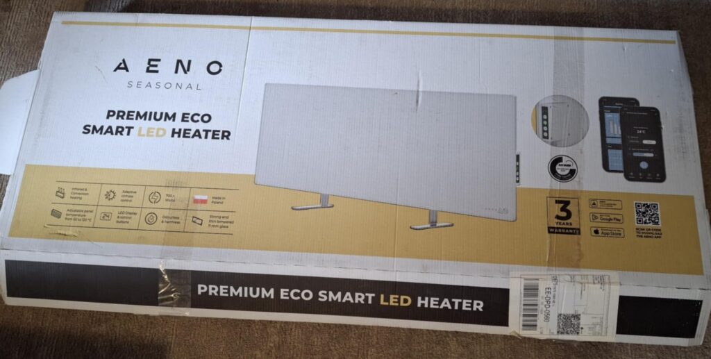 AENO Premium Eco Smart.LED-ekraan. Juhtimine nuppude või AENO rakenduse kaudu. Info kodulehel: https://seasonal.aeno.com/et/heater