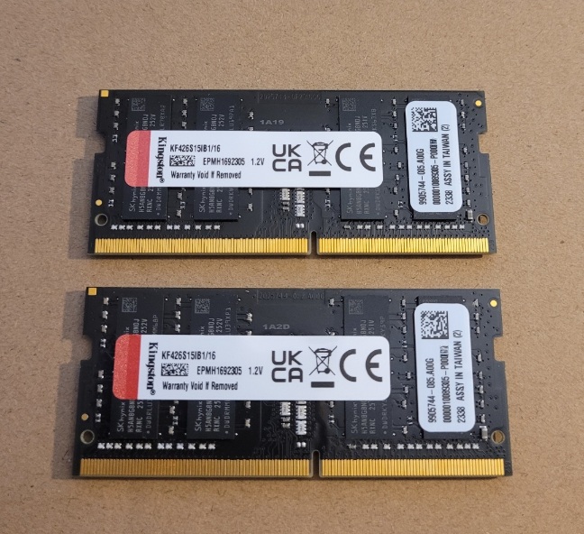 Uueväärsed mälud sülearvutile. Kokku 2 pulka, 2x16GB=32GB. - Kingston FURY KF426S15IB1/16 - Memory Type DDR4 ...
