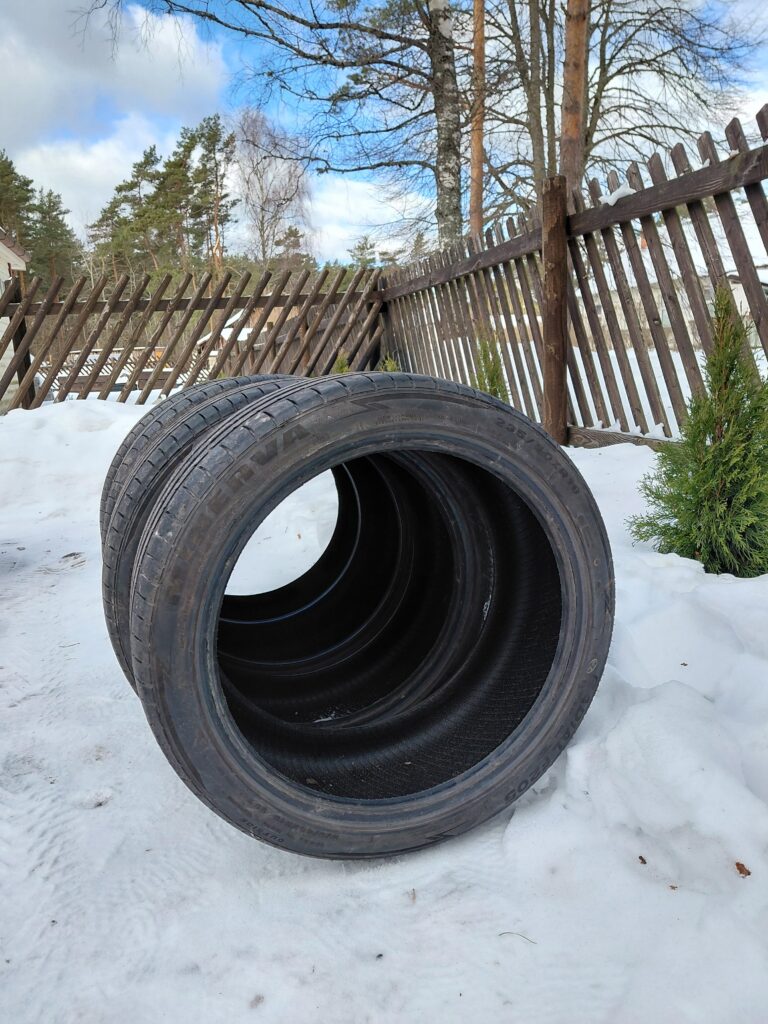 Nelikveolise auto alt pärit korraliku mustriga 235/40/18 Minerva suverehvi jooks. Dot21