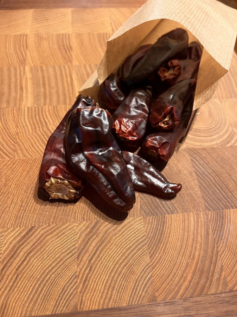 Seemned tulid otse Mehhikost, täpseid sorte enam paraku ei mäleta, tumedad suured on Guajillo (15-18g/kotis).