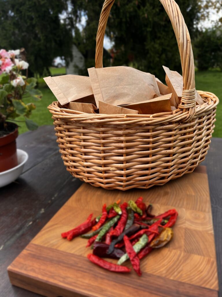 Müüa koduses kasvuhoones kasvanud tšillide kombo.