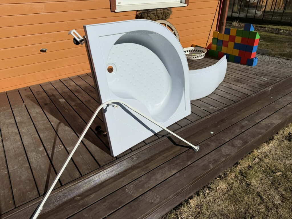 Müüa dušialus (laius 88 cm, kõrgus 40 cm) ja kardinasiin.
