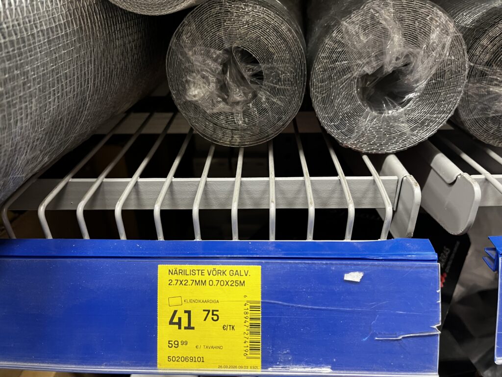 Müüa äsjaostetud rull traatvõrku 0,7m x 22m, pakend avatud, soovi korral ka meetri kaupa 2 eur/m, sobib putukate, näriliste, kodulindude kaitseks
