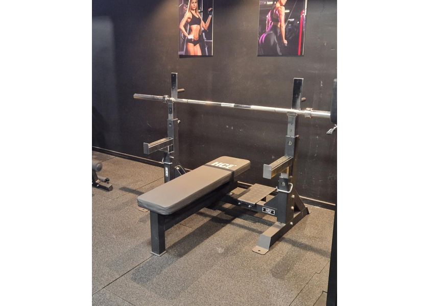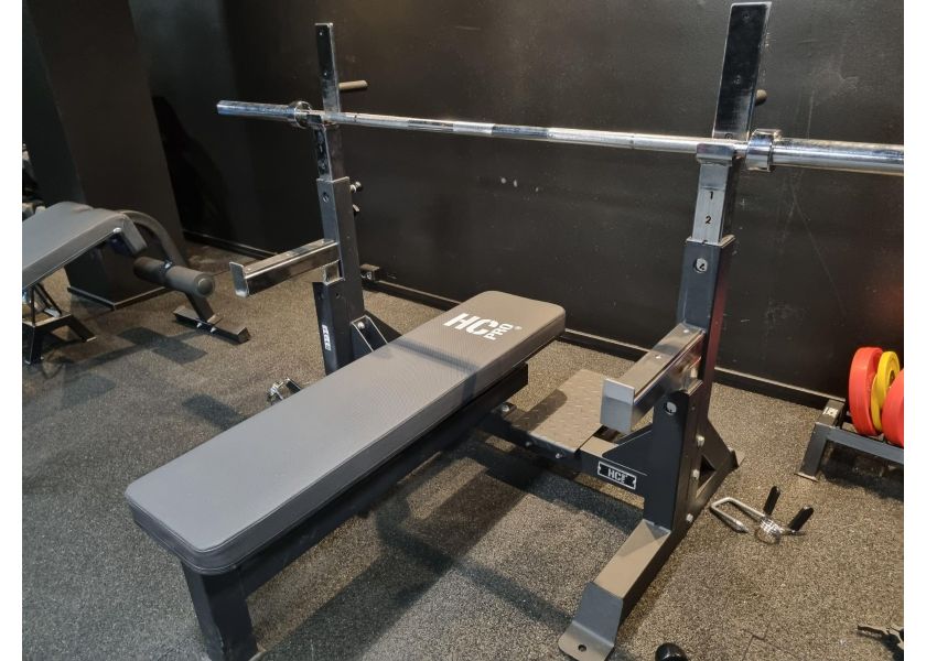 Täiesti uus ja pakendis,lamades surumise pink turvaraudade ja abistaja platvormiga.