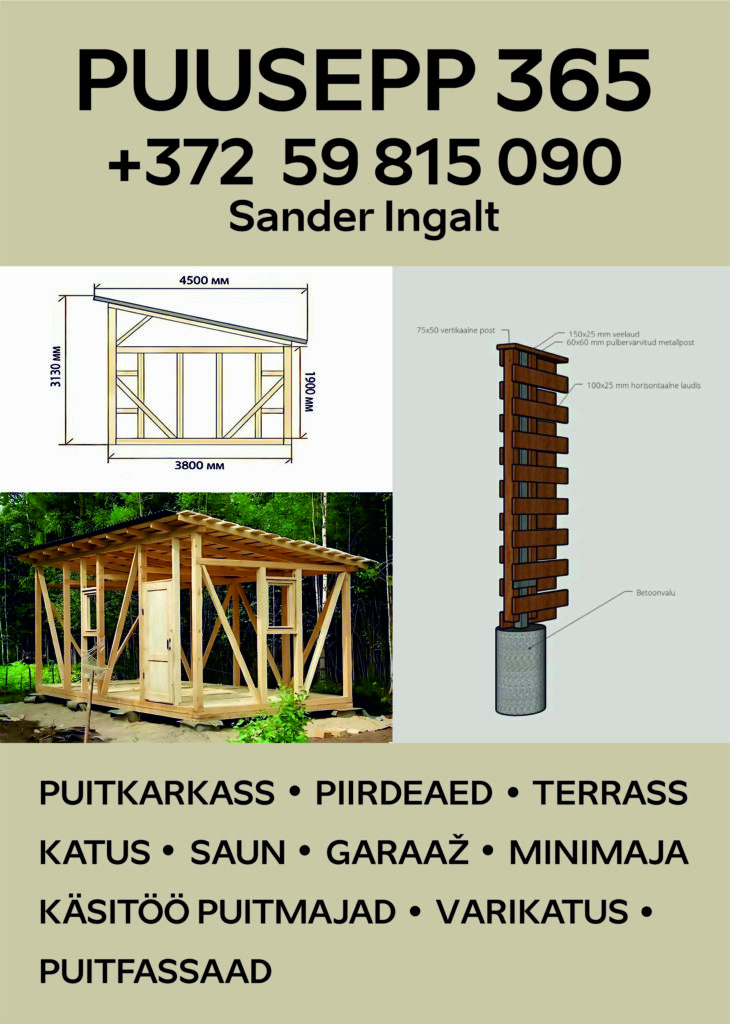 Puusepp ootab uusi väljakutseid! *Puitkarkass *Käsitöö puitmaja *Katus *Terrass *Kuur *Garaaž *Saun *Sisevooder *Välisvooder *Põrand ...