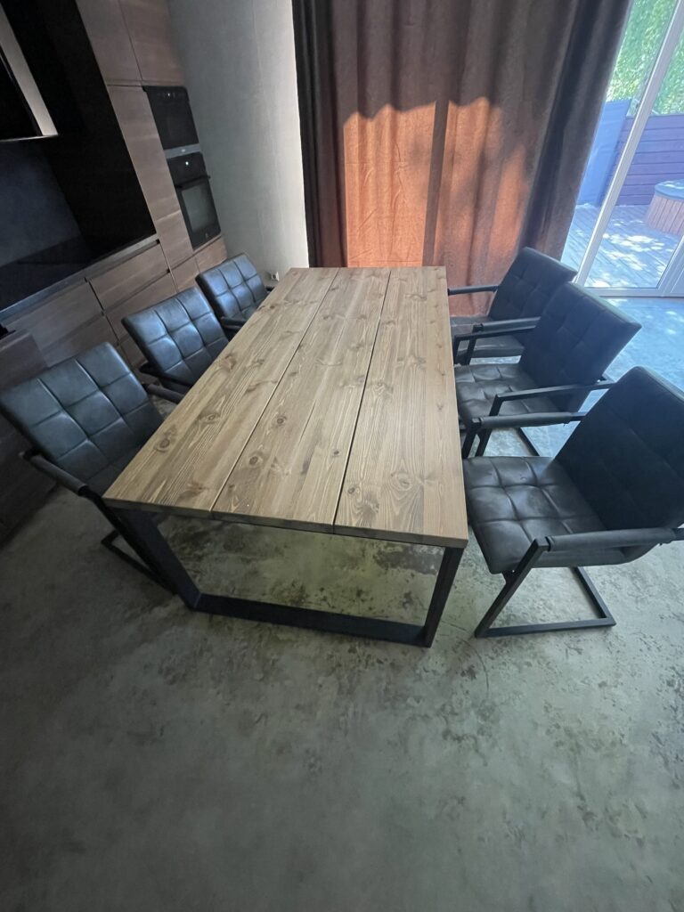 Müüa korralik ja tugev söögilaud mõõtudega 1000x2000x850mm ning 6 terasraamiga tooli.