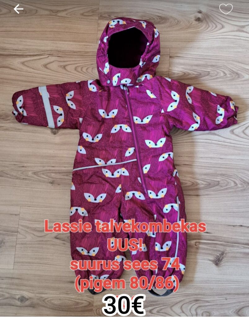 Uus Lassie talvekombekas.Sees kirjas 74 aga kindlasti nii väiksele lapsele suur. Pigem sobib 80/86 Saadan ...